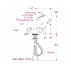 BARKA DS0241 Hånddusj / Cockpitdusjsort - 1,5m krom slange - av/på bryter