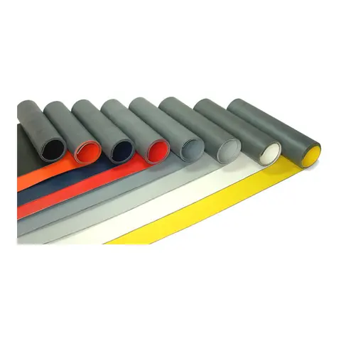 1: Baksiden av duken: PVC-duk har lik farge på begge sider. Hypalon-duk har ulik farge på fremsiden og baksiden. Baksiden er mørk grå eller sort.
